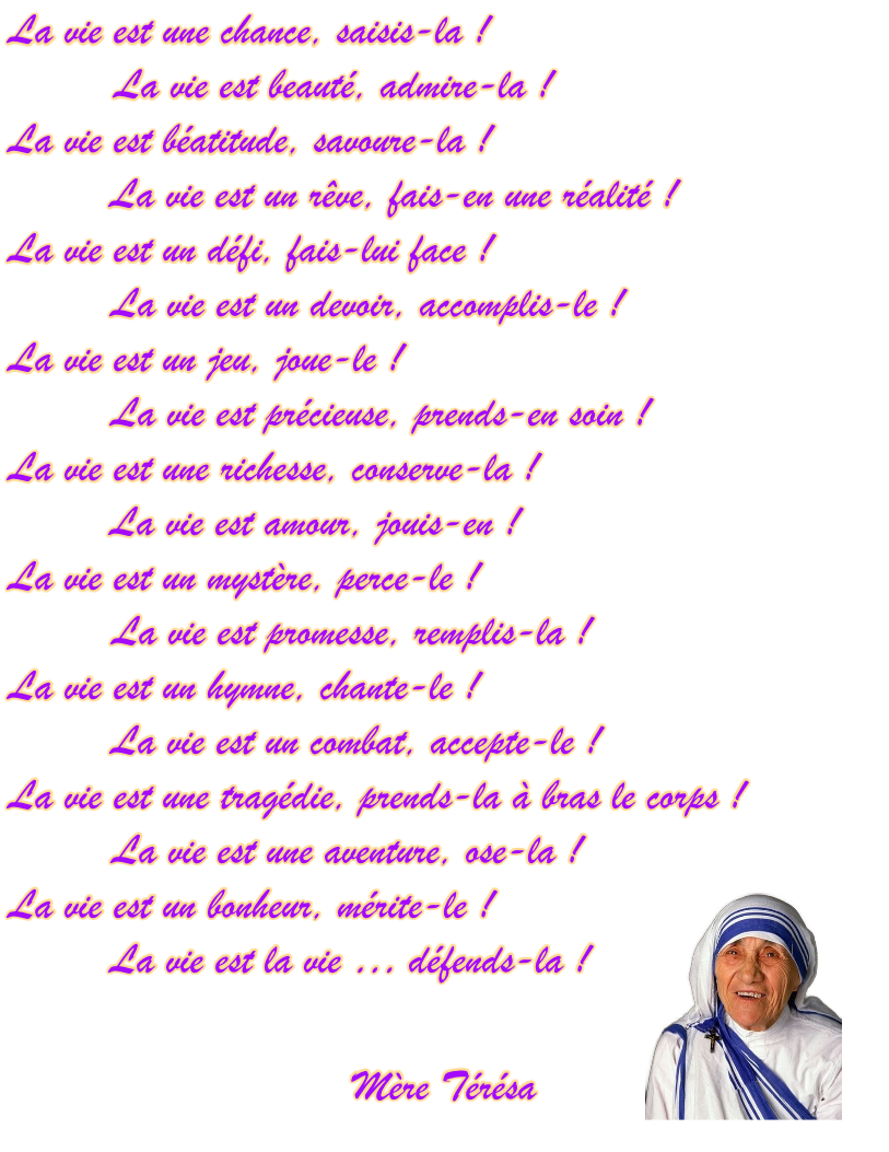 La vie … Retour à la page :   « Les prières spirituelles »