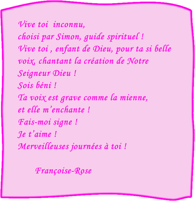 >> Aller à la  « Barre de navigation n°2 » << Retour à la  Galerie de photos >> Entendre le chant et voir les paroles